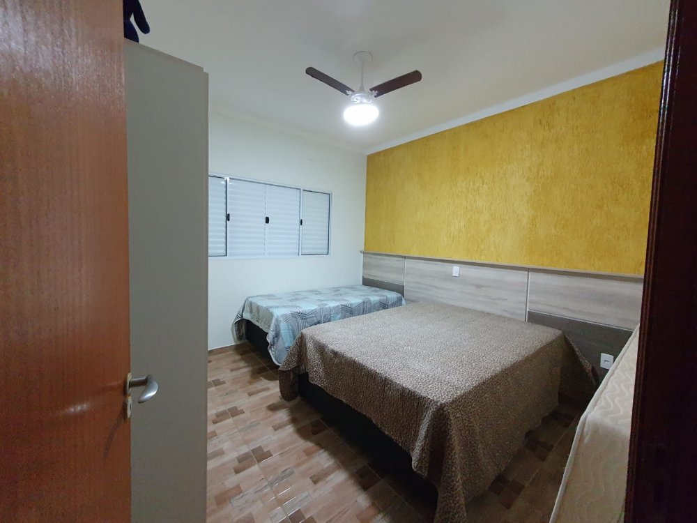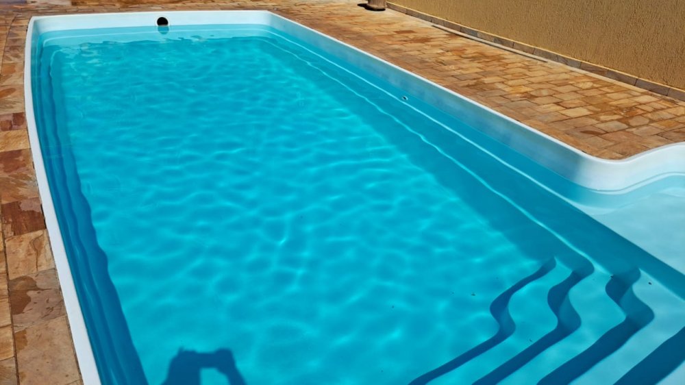 A casa tem 140m² de área construída e é composta por quatro quartos, sendo duas suítes, banheiro social, banheiro da piscina, sala, cozinha, lavanderia e pia para limpeza de peixes. A área de lazer é ampla e possui 120m² de construção e conta com churrasqueira, garagem e piscina de 28.000 litros preparada para aquecimento.